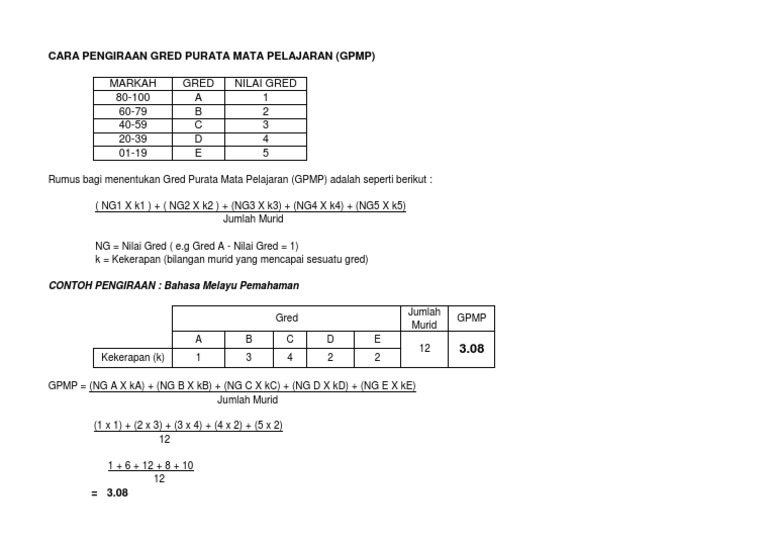 Pusat Sokongan Guru Sri Al Amin Bangi Cara Pengiraan Gred Purata Mata Pelajaran Gpmp