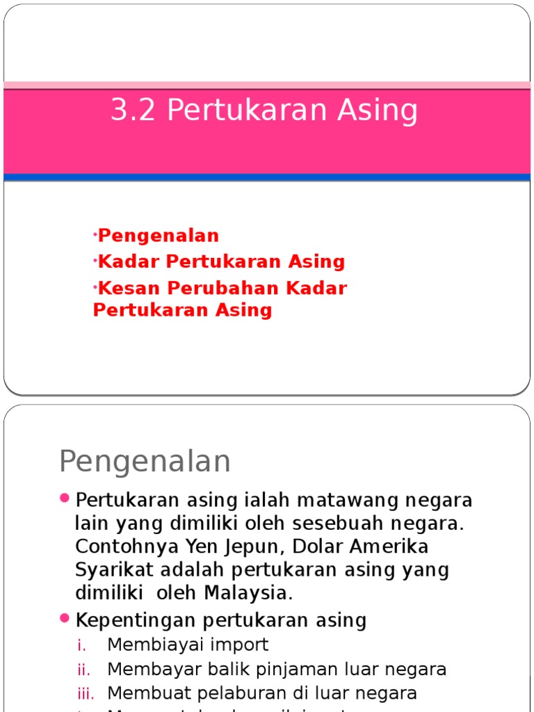 Tetapi jangan percaya saja akan kata-kata kami. Kadar pertukaran asing asal ialah US1 RM350 Kadar pertukaran asing baru ialah US1 RM 375 Perubahan kadar pertukaran asing tersebut menunjukkan nilai RM menurun atau nilai US meningkat Nilai RM menurun kerana lebih banyak Ringgit Malaysia diperlukan utk mmbeli satu Dolar Amerika Syarikat KESAN PERUBAHAN PERTUKARAN ASING TRHADAP IMPORT. Instrumen Multilateral MLI Individu Tidak Bermastautin.